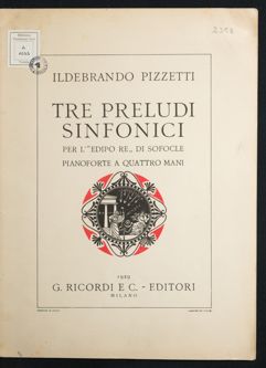 Tre preludi sinfonici : per l'"Edipo Re" di Sofocle / Ildeb…