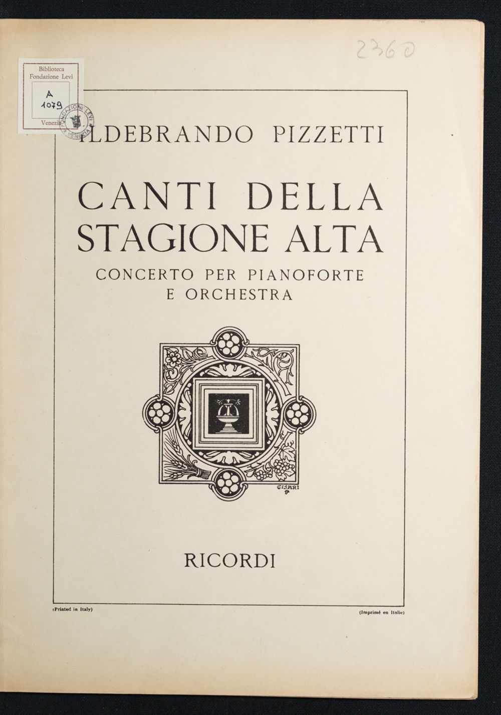 Canti della stagione alta : concerto per pianoforte e orchestra / Ildebran…